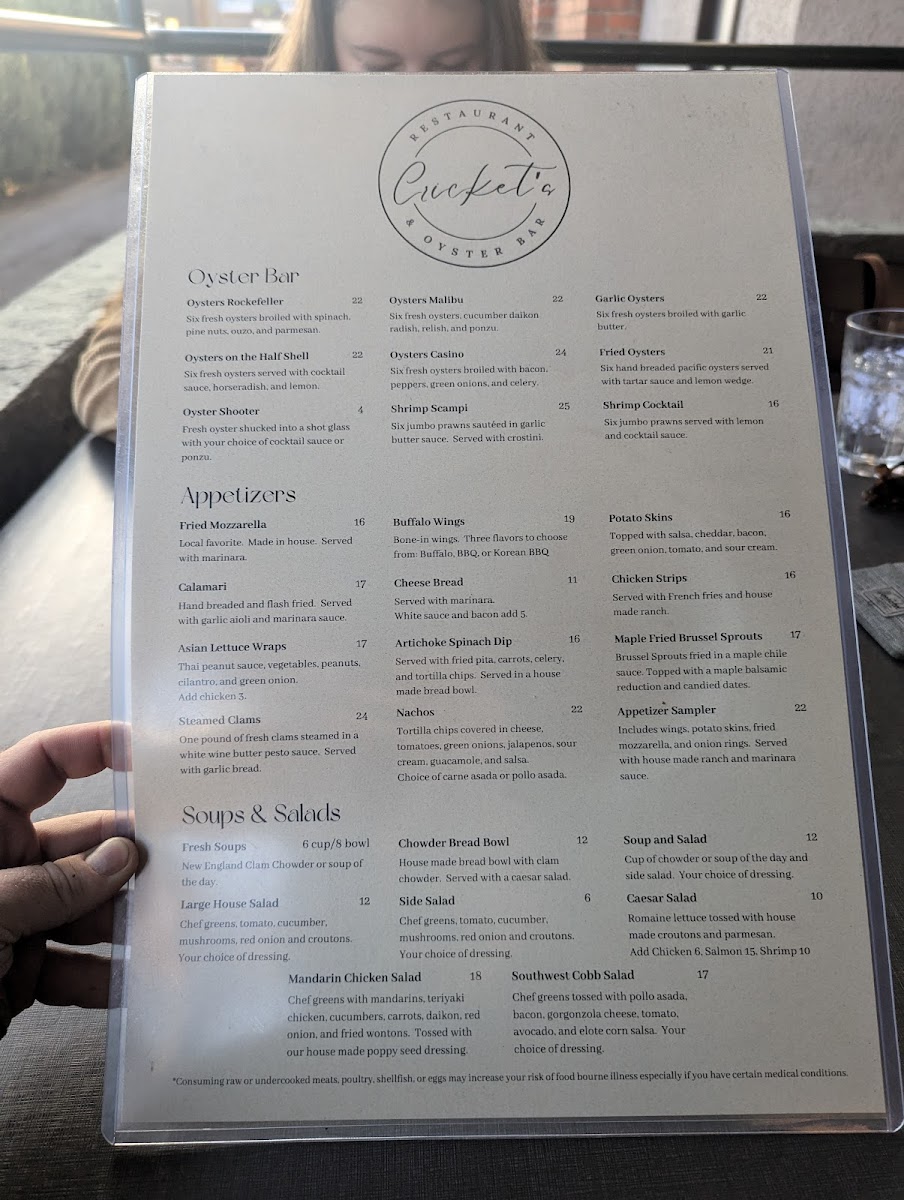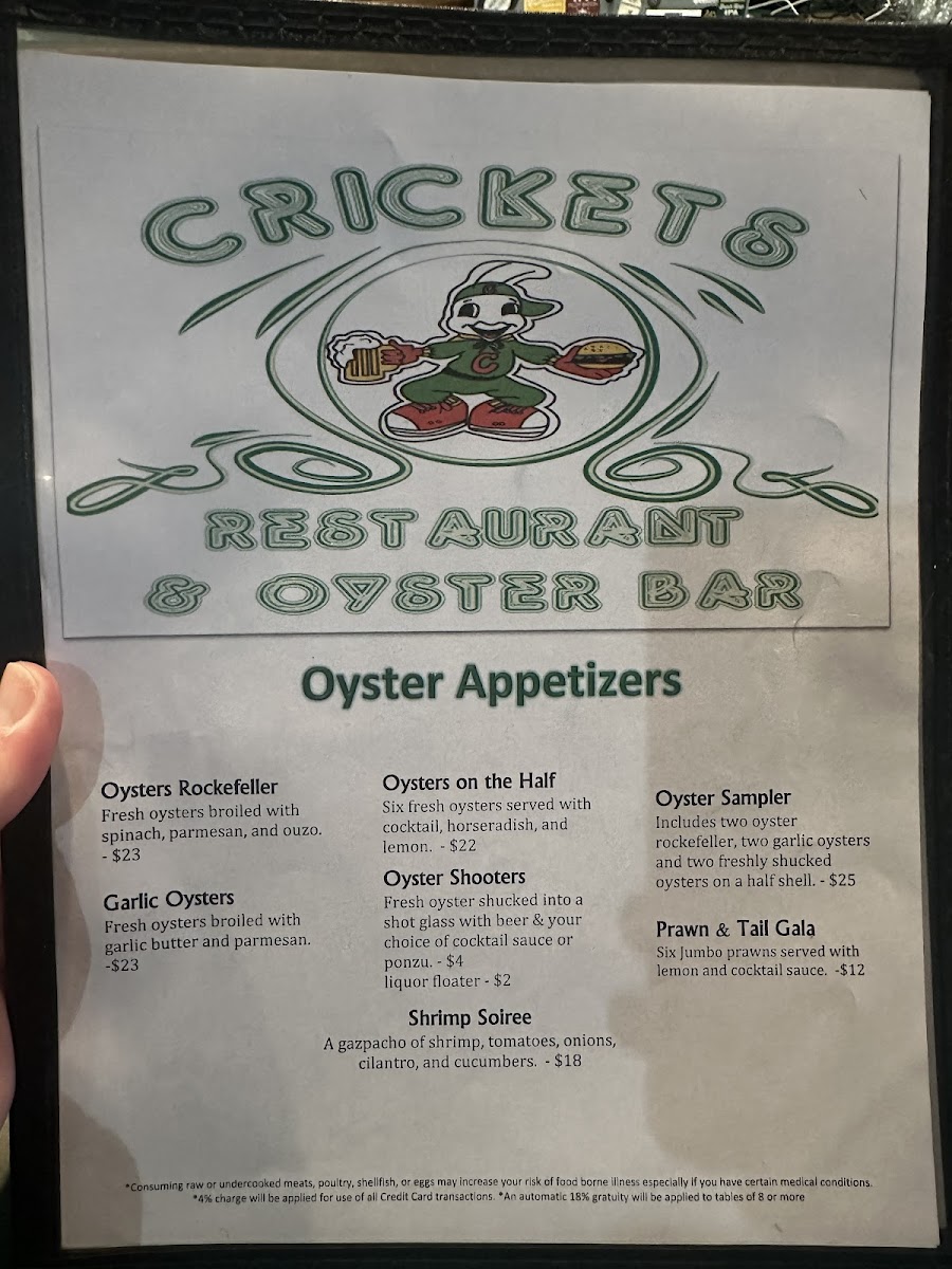 If you're in the mood for a casual yet unforgettable dining experience, look no further than Cricket's Restaurant And Oyster Bar Menu. Located at 424 Sherman Ave, Coeur d'Alene, ID, this spot is perfect for anyone craving fresh seafood, mouth-watering oysters, and a cozy atmosphere that makes you feel right at home. The menu is a delightful mix of classic favorites and unique creations, all crafted with a passion for quality and flavor. Whether you're stopping by for a quick bite or enjoying a leisurely meal, you'll find a dish that hits the spot. From juicy oysters on the half shell to delicious seafood entrees and expertly crafted cocktails, there’s something here for everyone. The laid-back vibe, friendly service, and fantastic food make it a local favorite for a reason. It's the ideal place to unwind, savor incredible flavors, and enjoy good company.